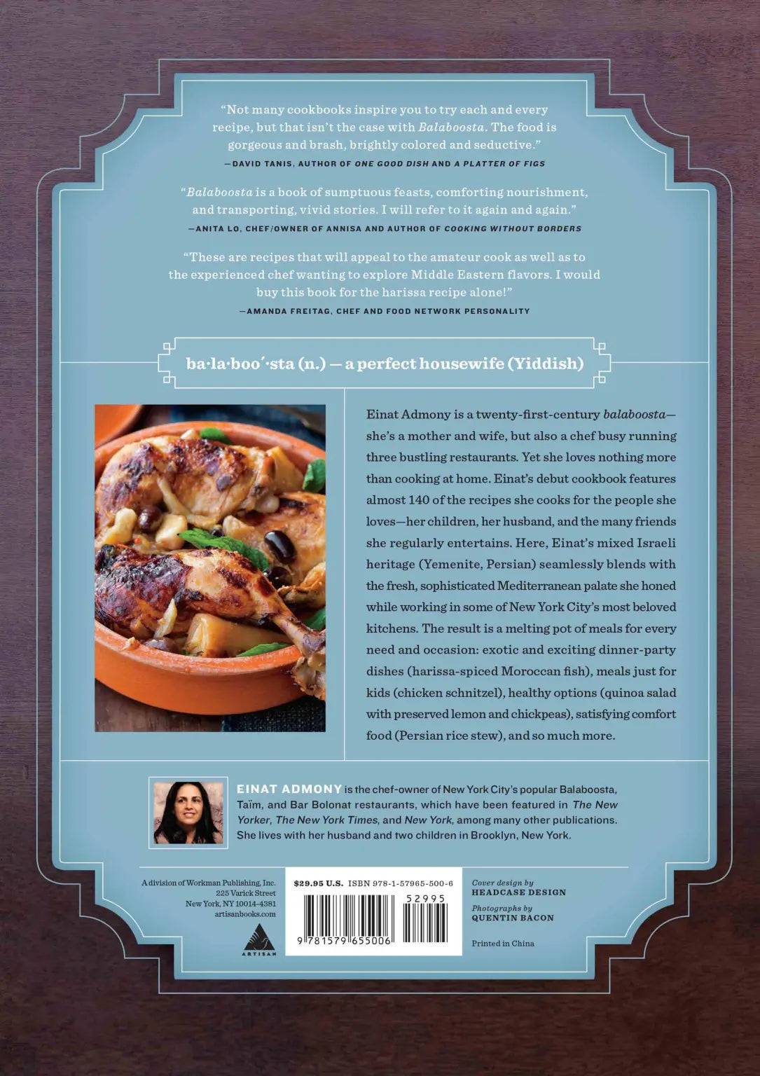 Einat Admony is a 21st-century balaboosta (Yiddish for “perfect housewife”).She’s a mother and wife, but also a chef busy running three bustling New York City restaurants. Her debut cookbook features 140 of the recipes she cooks for the people she loves—her children, her husband, and the many friends she regularly entertains. Here, Einat’s mixed Israeli heritage (Yemenite, Persian) seamlessly blends with the fresh, sophisticated Mediterranean palate she honed while working in some of New York City’s most beloved kitchens.