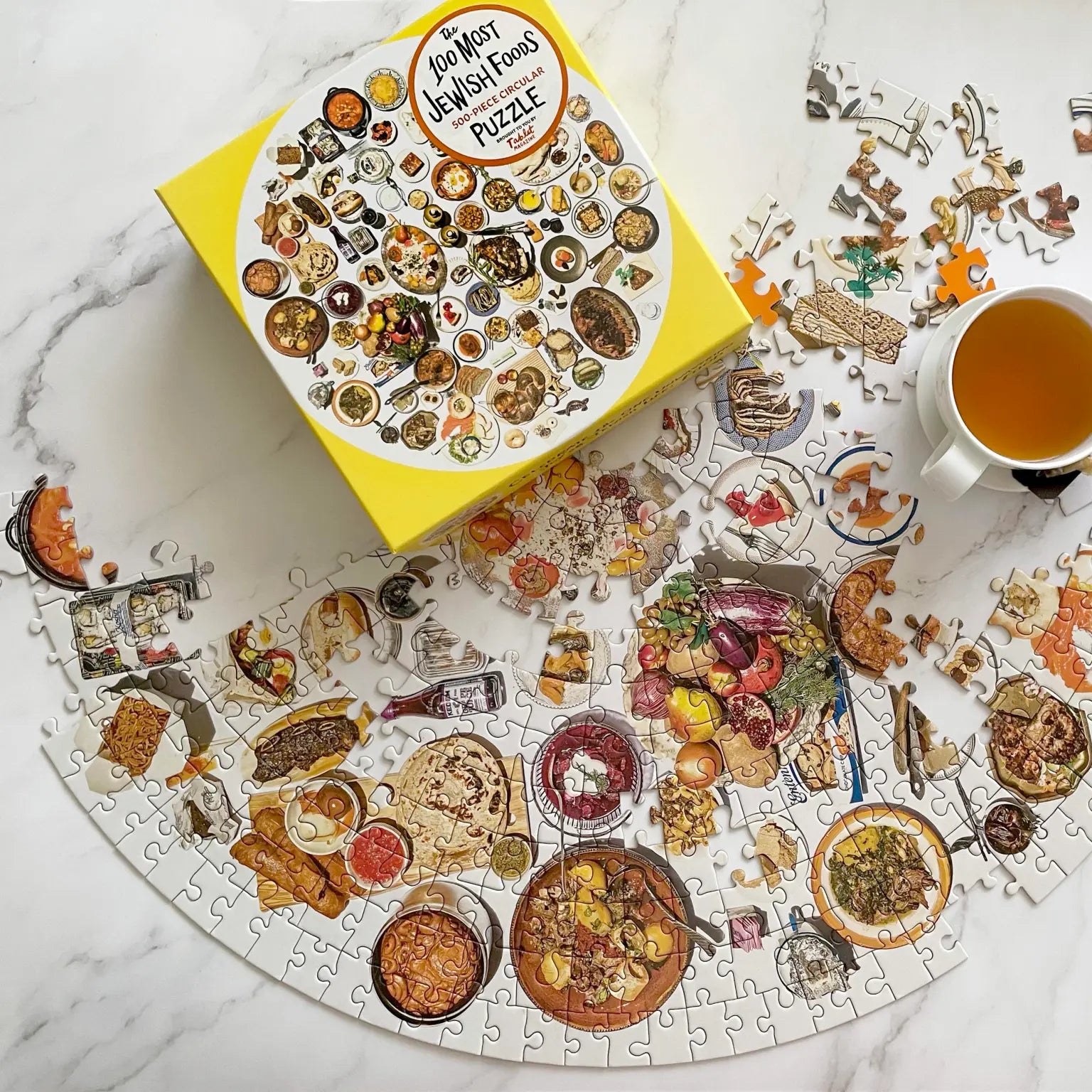 From Tablet magazine—the definitive online authority on Jewish life and culture—and based on the acclaimed 100 Most Jewish Foods, this ingenious 500-piece circular puzzle celebrates the one unwavering joy of Jewish life: food! In The 100 Most Jewish Foods 500-Piece Circular Puzzle, a giant table featuring all 100 of Tablet’s (highly debatable) list of the most Jewish foods materializes in gorgeous full color.