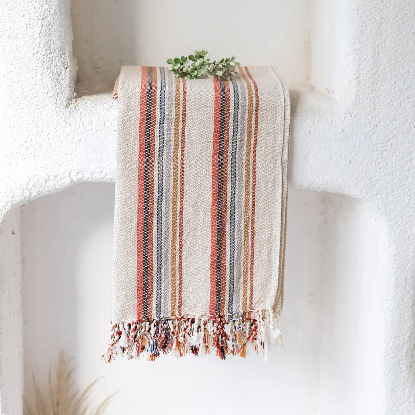 These mid weight Turkish towels are pre-washed and so soft! They're fast drying thanks to the unique knitting technique and sand resistant too. These towels are super portable making them great for travel and beach days. 5-6 towels can fit into a small beach bag, and one towel rolls to a size of a burrito (a stylish burrito, that is!)